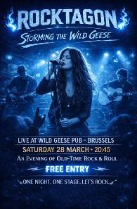 Je vous propose de nous retrouver at The Wild Geese, superbe Irish Pub dans le quartier européen (à proximité du Rond-Point Schuman) pour assister à ce concert.