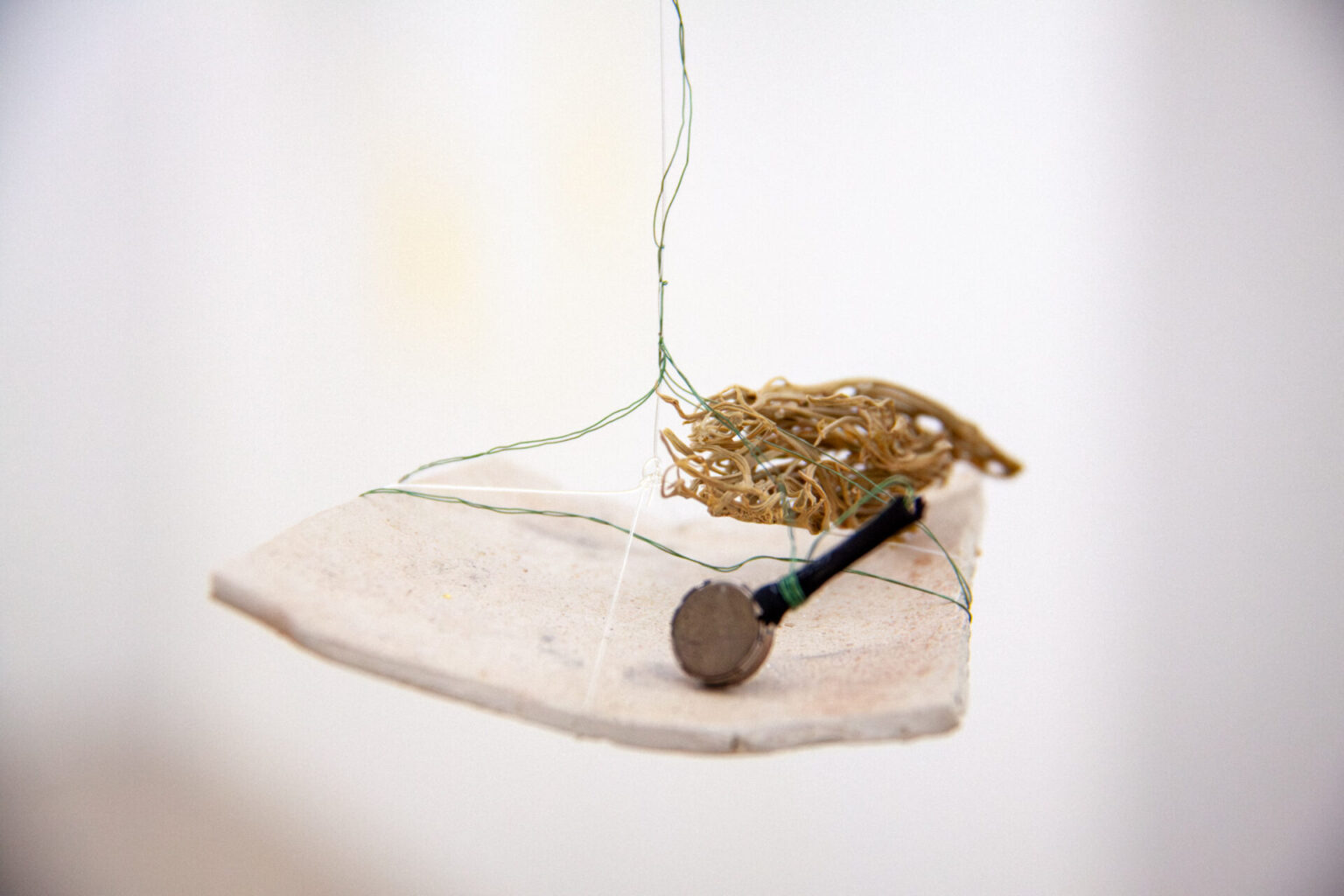 Dans cette installation sonore, des objets trouvés et des mécanismes électroacoustiques sont disposés dans un habitat temporaire d’êtres hybrides miniatures. Ni robots, ni animaux, ils se déplacent sans but, mais avec persévérance. Leurs voix sont fragiles et, par moments, ils se taisent, comme s’ils cherchaient à se souvenir de tous ces objets autrefois utiles – fils, bobines, boutons, fragments de céramique et de plastique.