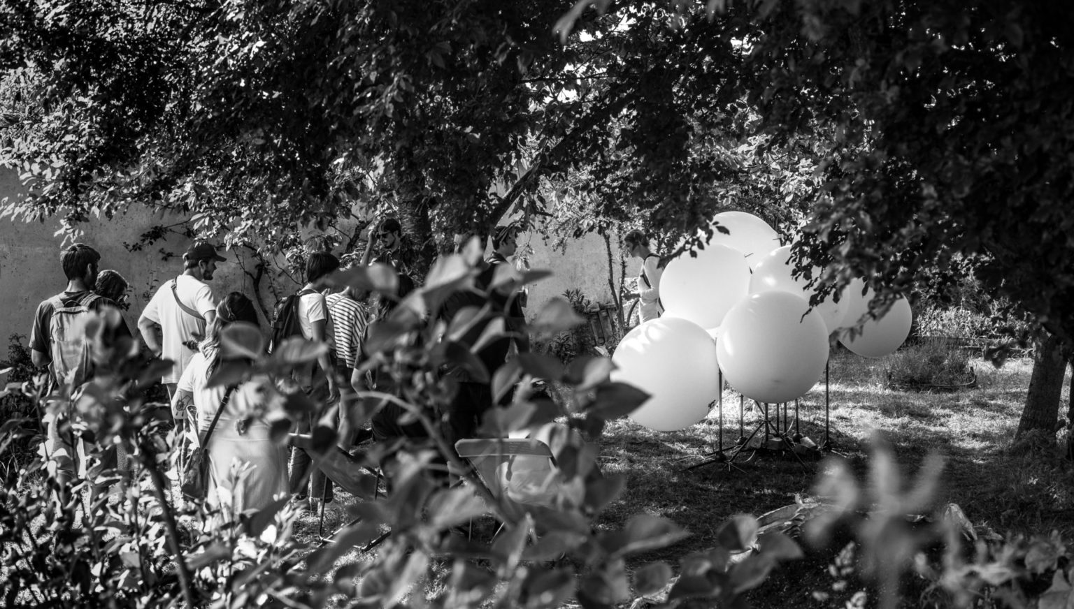 L’installation Chôra est un chœur de ballons, rempli de l’air du lieu. Leur peau vibre au son de bruits blancs. Cette matière sonore est primaire : on la retrouve dans les éléments naturels tels que le bruit des vagues, le vent, la respiration des mammifères…